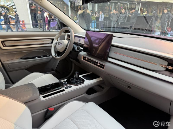 内饰方面,新车采用莫兰迪紫主题,灰釉紫基调点缀玫瑰金饰条,搭配小香风编织格纹座椅,营造浪漫轻奢的驾乘氛围。